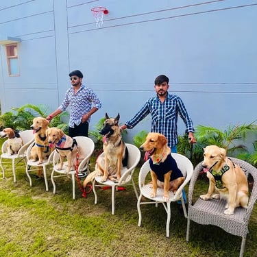 Snapshots of training, playtime, and cozy boarding moments.